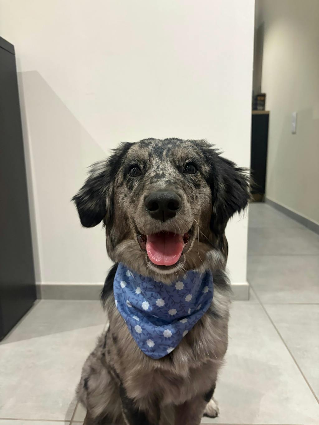 Apporte fraîcheur et style au look de ton poilu avec ce bandana bleu lumineux décoré de jolies marguerites blanches 🌊🐾